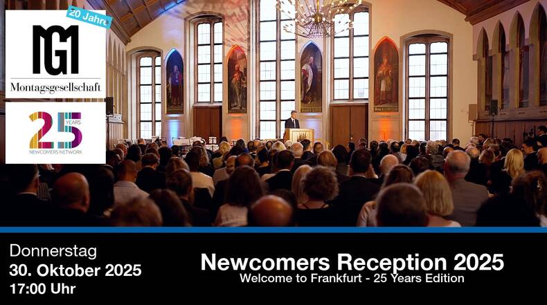 Im Anschluss lädt das Newcomers Network gemeinsam mit der Montagsgesellschaft zu einem Imbiss und inspirierendem Networking ein. Nutzen Sie die Gelegenheit, internationale Fach- und Führungskräfte, Vertreter aus Wirtschaft, Politik, Kultur und Gesellschaft sowie engagierte Bürgerinnen und Bürger der Region FrankfurtRheinMain kennenzulernen und miteinander ins Gespräch zu kommen.